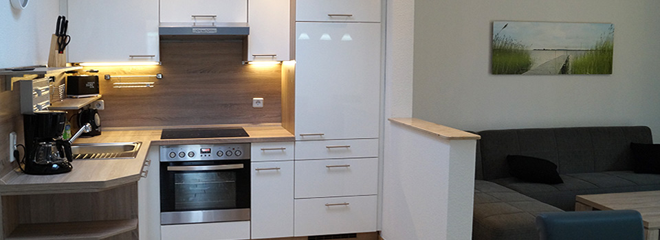 - Geschirrspüler, Herd mit Backofen, Mikrowelle, Kühlschrank mit Tiefkühlfach