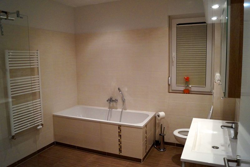 Ein Ferienhaus ist speziell für Familien eingerichtet und hat hinter der Terrasse einen direkten Zugang zum kleinen Spielplatz. Das zweite Haus bietet Urlaubern die Möglichkeit auch ihre Haustiere mitzunehmen. Beide Häuser verfügen über einen großzügigen Wohn- und Essbereich und zwei getrennte Schlafzimmer. Das Badezimmer ist mit Wanne, ebenerdiger Dusche und Waschmaschine ausgestattet. Sie sind ganzjährig buchbar (Fußbodenheizung).